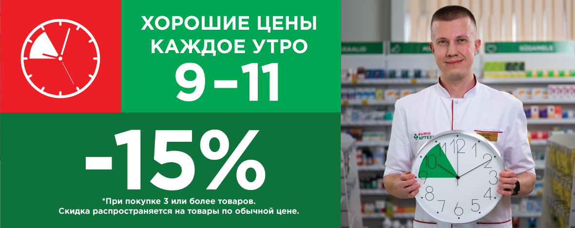 - Скидка действует во всех Евроаптеках по всей Эстонии.