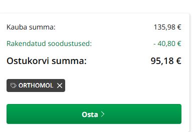 - Kehtiv sooduskood kajastub ostukorvis summa all allahindlusena.