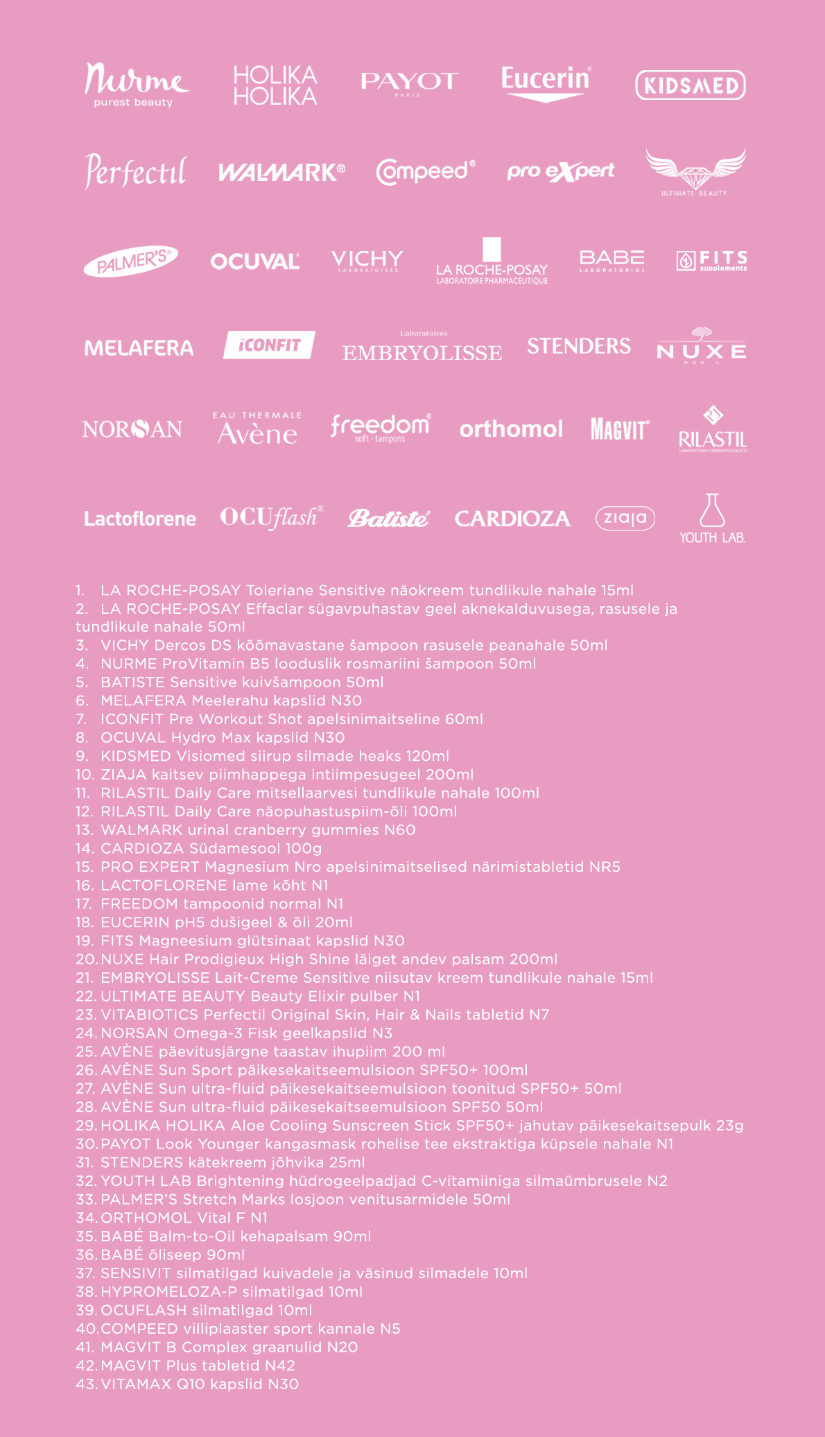 *Kingikampaania ei laiene ravimite ostule, st. ilukarbi saamiseks peab ostukorvis olevate toodete väärtus ilma retsepti-, käsimüügi- ja veterinaarravimiteta olema miinimum 75€.