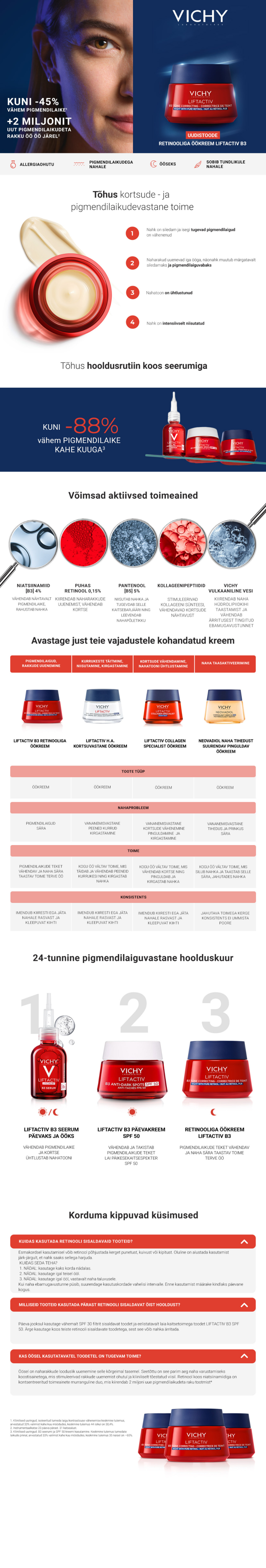 Ühendab niatsiinamiidi (B3-vitamiini) ja 0,15% puhast retinooli, mis stimuleerivad rakkude uuendamist ja aitavad parandada naha struktuuri.