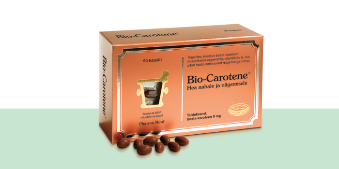 „Bio-Carotene beetakaroteeni sisaldavad kapslid kaitsevad nahka ning annavad nahale ilusa jume.“