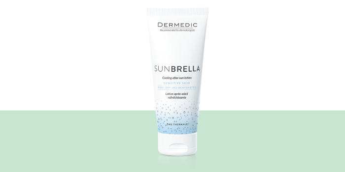 „Dermedic Sunbrella päevitusjärgne losjoon tagab jahutava tunde ning toidab kuiva ja dehüdreerunud nahka.“