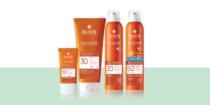 RILASTIL SUN SYSTEM VELVET KREEM SPF30 50ML RILASTIL SUN SYSTEM VELVET LOSJOON SPF30 200ML RILASTIL SUN SYSTEM TRANSPARENT SPREI SPF30 200ML RILASTIL SUN SYSTEM BABY TRANSPARENT SPREI SPF50+ 200ML
