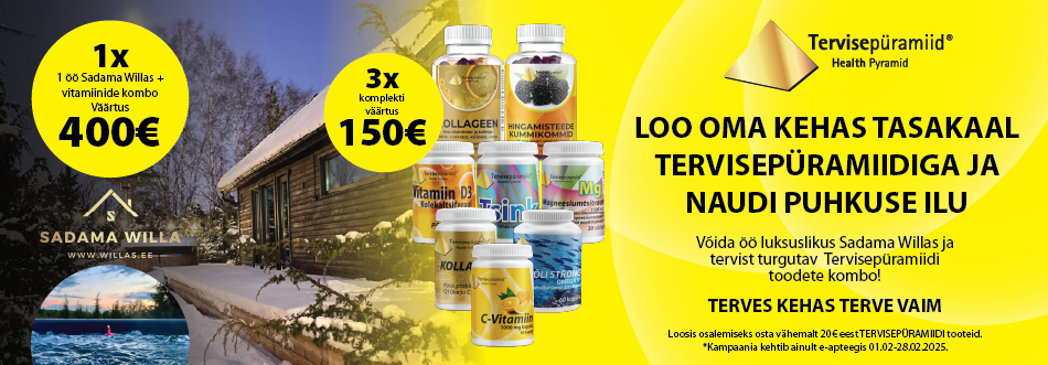 Loosikampaanias osalemiseks tuleb osta Euroapteegi e-apteegist perioodil 01.02 – 28.02.2025 vähemalt 20€ eest TERVISEPÜRAMIID brändi tooteid (ühekordne ostukorvi suurus). Kampaania rakendub vaid tootehinnale ja ei laiene pakenditasule ega tarnehinnale.